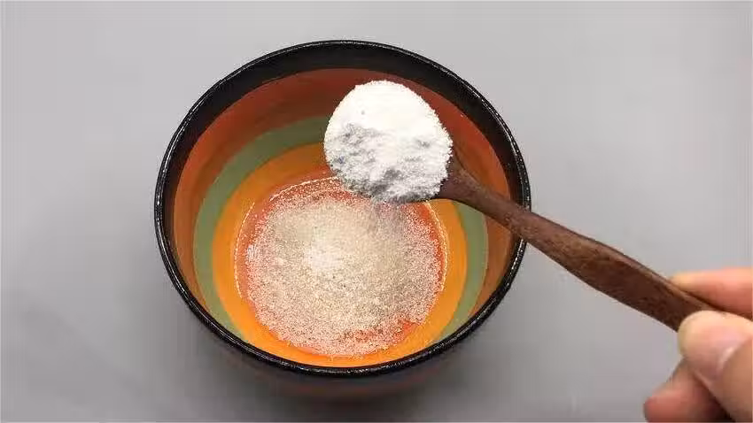 首先,我們在碗中加入一勺白糖,再加入一勺洗衣粉,然後慢慢倒入清水,邊加邊攪拌,確保兩者能夠迅速溶解。