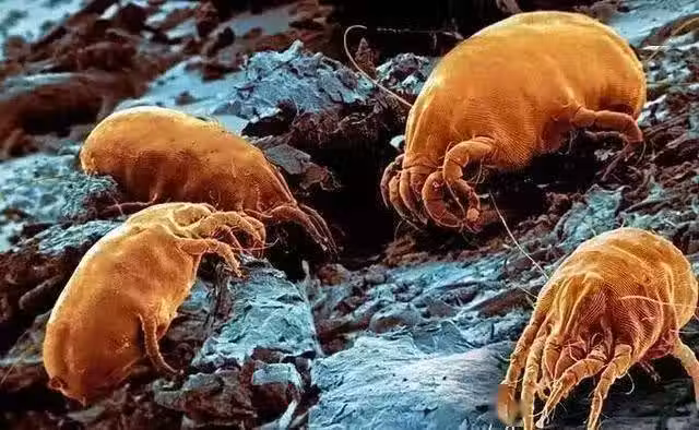 蟎蟲啃噬皮膚細胞,造成細胞異常死亡變成大量皮屑,堆積在臉上,皮膚摸上去就顯得很粗糙、暗黃,大量的皮屑還會容易長暗瘡、粉刺。