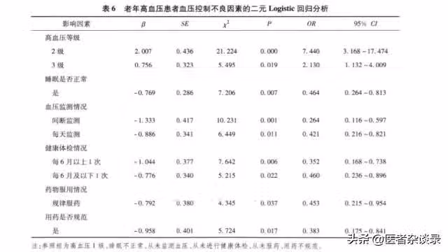 在生活習慣方面,高血壓患者為控制血壓應保證正常的睡眠,規律的監測血壓和定期的健康體檢。另外規律服藥和用藥規範是控制血壓的保護因素,這與高血壓患者控制血壓的意識有關.