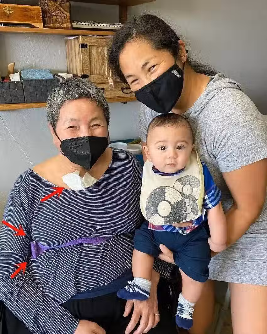 但如今已經77歲的她身體狀況大不如前,行動也變得遲緩,從曬出的照片可以看到,鄭佩佩如今還需要使用固定帶,甚至需要將衛生紙夾在領口處,防止口水的溢出。