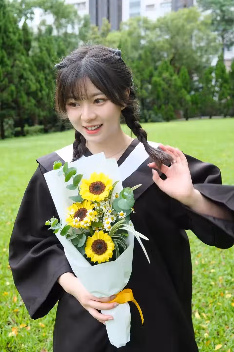 據《自由娛樂》報導,24歲的陳欣妤擁有水汪大眼、白皙鵝蛋臉,大學時期就因仙氣飄飄、被人PO到「PTT表特版」驚艷一票網友,甚至有人贊她:「和韓團TWICE成員定延超像!」陳欣妤畢業典禮時,雖然父母因工作無法參加,她仍分享身穿學士服的美照,綁著雙辮子、拿著向日葵花束,模樣十分清秀可人。