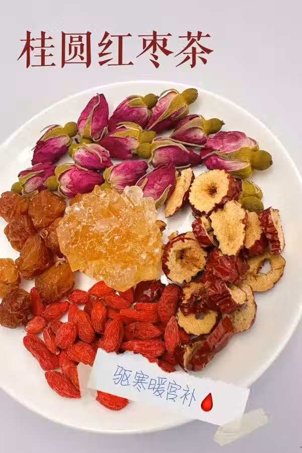 2. 桂圓紅棗茶:玫瑰➕紅棗➕桂圓肉+黃冰糖➕枸杞