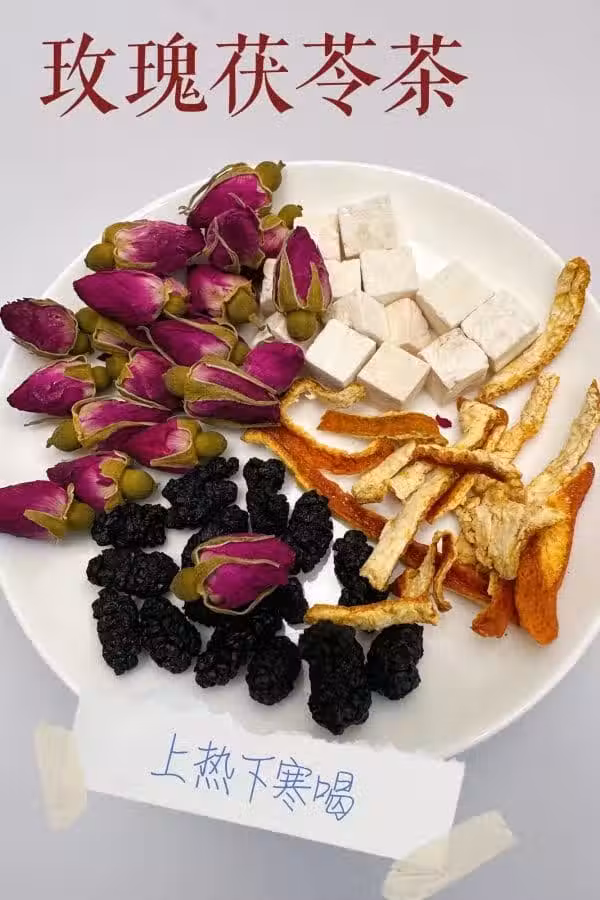 4. 玫瑰茯苓茶:玫瑰花➕陳皮➕茯苓➕桑葚