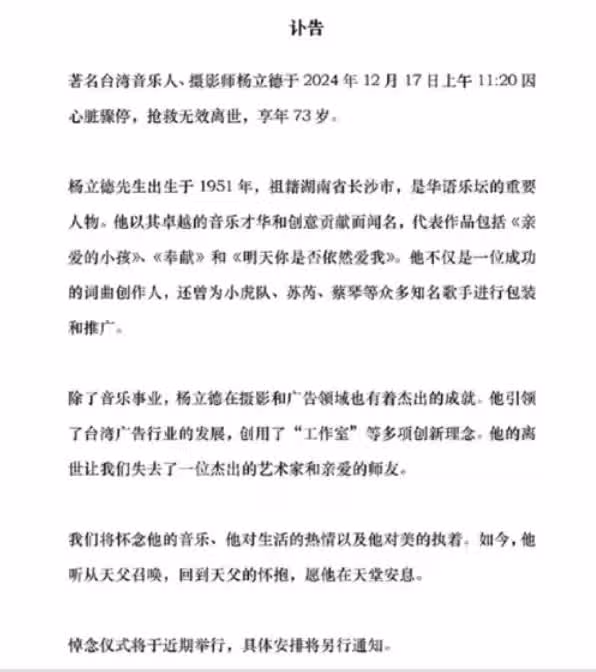 楊立德不僅是優秀的詞曲創作者,更是眾多知名歌手的伯樂,包括小虎隊、蘇芮、蔡琴等巨星都曾受其提攜,在他的精心打造下創下輝煌成就。