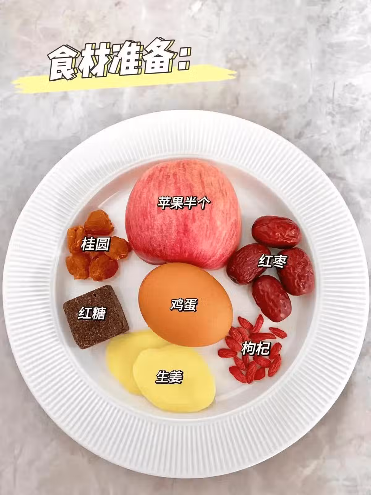 我這個還搭配的桂圓、紅棗、紅糖、枸杞、生薑、一整個荷包蛋,這些食材對女孩子特別友好!