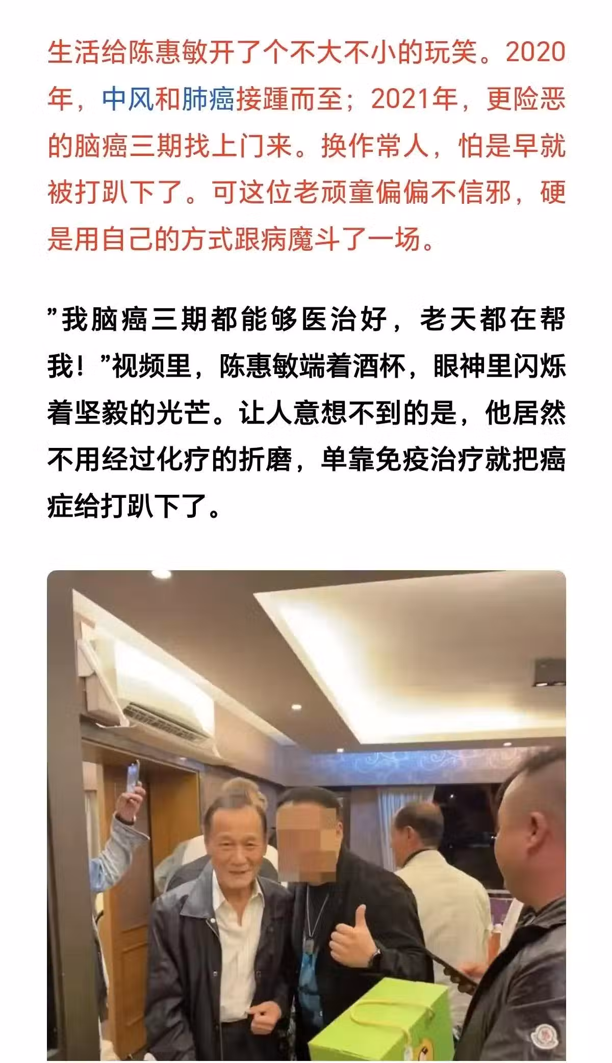 陳惠敏確實生病了,前些年被曝患腦癌三期、肺癌,並且中風。