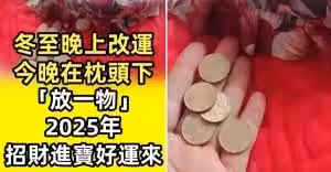 冬至晚上改運! 今晚在枕頭下,「放一物」2025年招財進寶好運來!