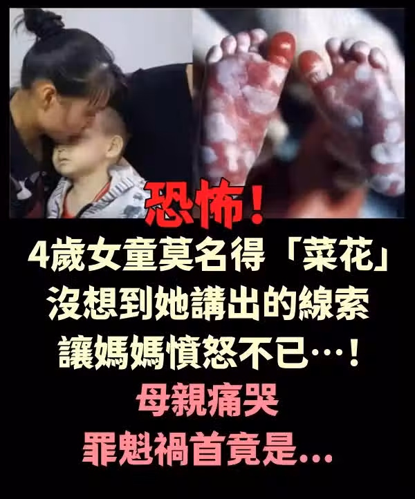 恐怖!4歲女童莫名得「菜花」,沒想到她講出的線索讓媽媽憤怒不已…!母親痛哭,罪魁禍首竟是……