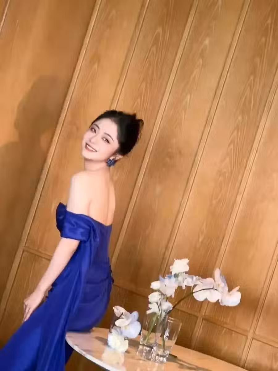 譚松韻藍色抹胸裙亮相,輕熟風造型別有一番韻味