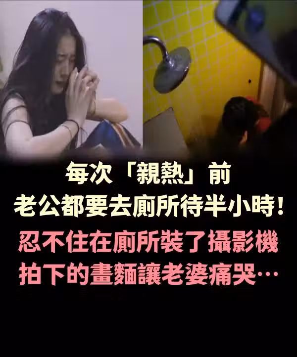 每次「親熱」前,老公都要去廁所待半小時!忍不住在廁所裝了攝影機,拍下的畫面讓老婆痛哭.…