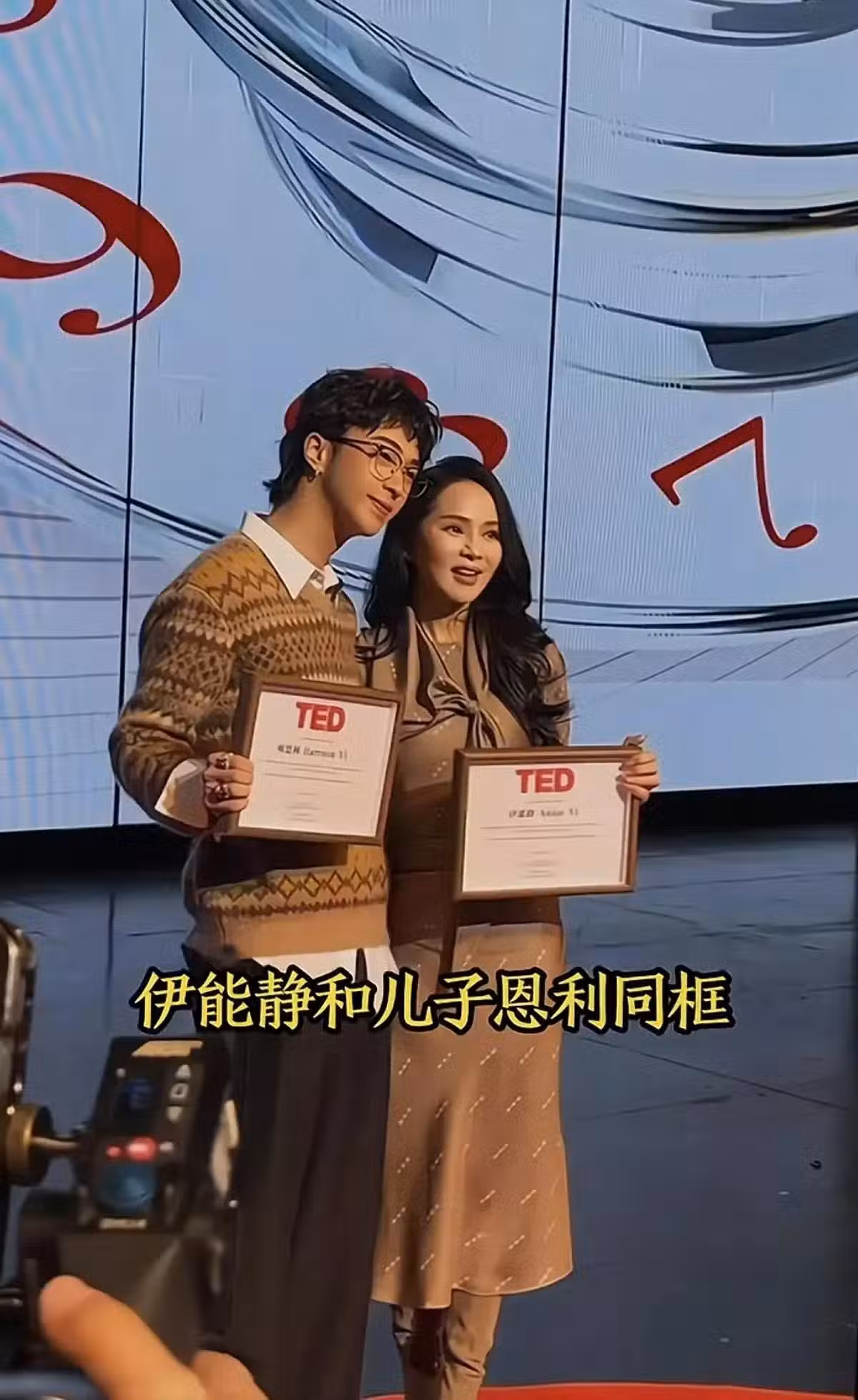 伊能靜臉上變化太大了,蒼老明顯,一看就是50多歲的人,她今年56歲了,站在兒子面前,真的就是媽媽。