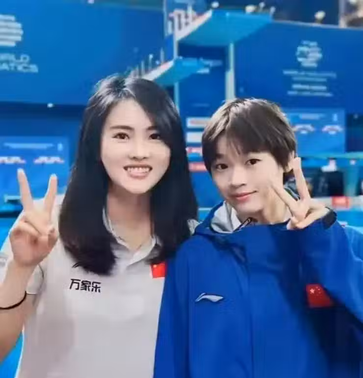 17歲全紅嬋給跳水小將當教練,陳若琳陪同,點贊水花消失術~