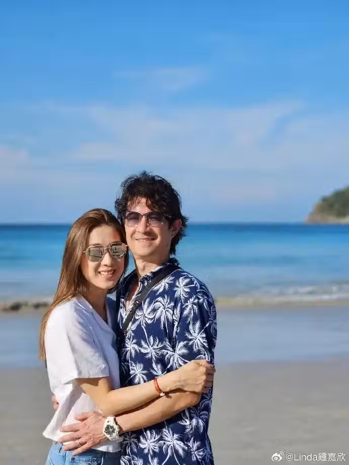 鍾嘉欣首先曬出的是自己和老公的甜蜜合影,合影中,鍾嘉欣和老公在海邊相擁在一塊兒,夫妻倆對著鏡頭露出一樣的幸福燦笑,真是隔著螢幕都被甜到了。並且就這麼看,鍾嘉欣的狀態是真好啊,她披著長發,戴著墨鏡,化著美妝,身穿短袖T恤,身材苗條,臉蛋兒幼態,完全看不出早已是三個孩子的媽媽,且已年滿40歲,保持得太好了。她的老公同樣狀態滿滿,雖然臉上有了非常明顯的歲月痕跡,但笑起來和鍾嘉欣的夫妻相真的沒得說。夫妻二人甜甜蜜蜜如熱戀,羨煞旁人。