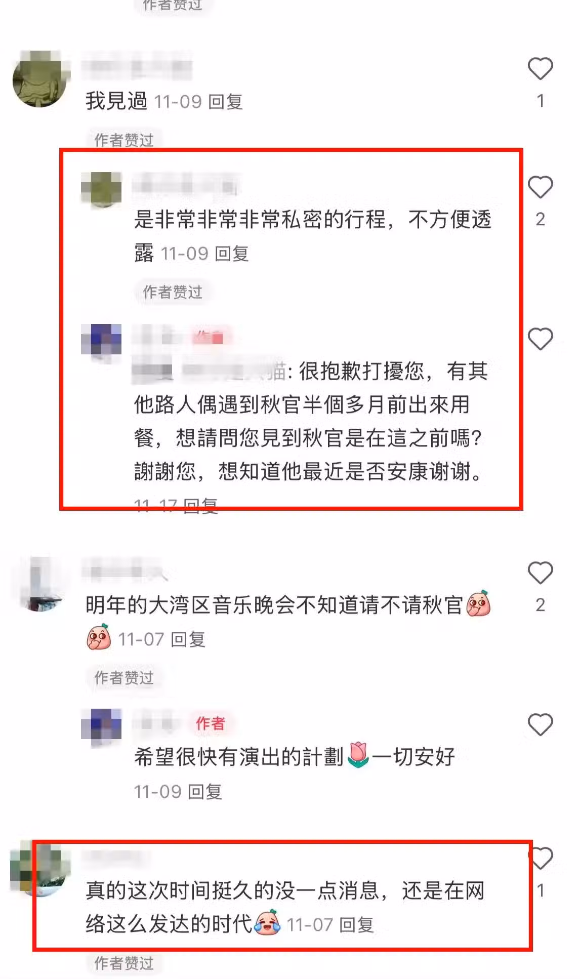 偶爾有香港市民給粉絲留言,聲稱在當地見過鄭少秋,觀察到他的身體狀況尚可,避免打擾他所以沒拍照片。
