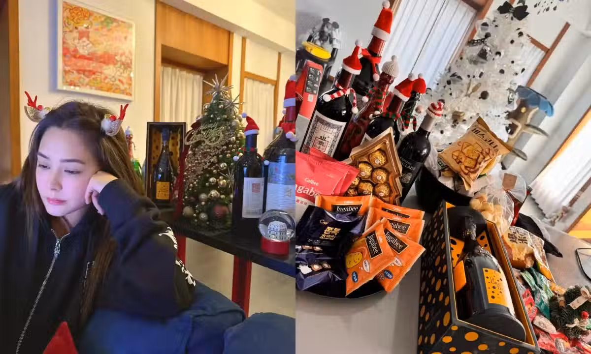 鍾欣潼(26日)在社媒分享多張照片,在北京的豪宅開派對。照片中所見,她非常有心思布置家居,買了很多美酒放在桌上,上面放了一頂迷你聖誕帽,圍繞著一棵小聖誕樹,窗邊位置則有貓爬架,另一邊是半開放式廚房。