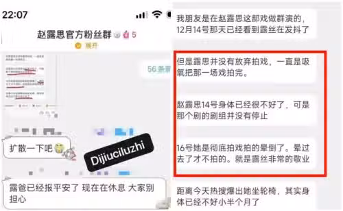 ▲趙露思粉絲群組有人稱趙爸爸已經出面報平安了,更有疑似劇組人員說趙露思身體早就不健康。(圖/網易娛樂)