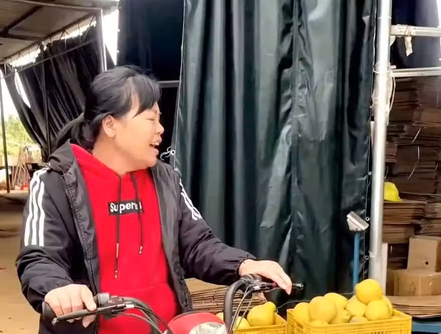 全媽媽騎車的時候,眯著眼睛,好像在享受這種家鄉特有的味道。