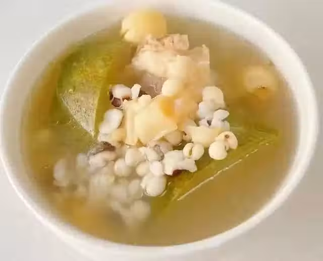 3、1小時後加入冬瓜、鮮淮山,再煮半小時後可食用。冬瓜不僅補水還利水,能促進身體排濕氣,消除身體水腫,讓濕氣順著小便排出去;山藥,它能補脾健胃,促進腸胃蠕動,幫助消化,消除積食。薏米可以利水滲濕,健脾止瀉。