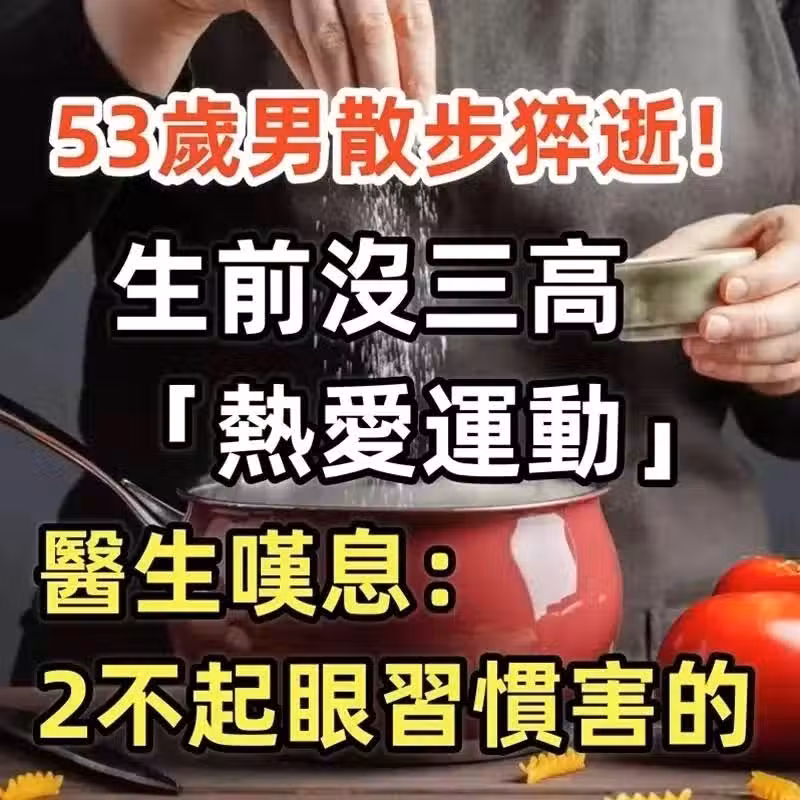 53歲男散步猝逝!生前沒三高「熱愛運動」, 醫生嘆息:2不起眼習慣害的❗