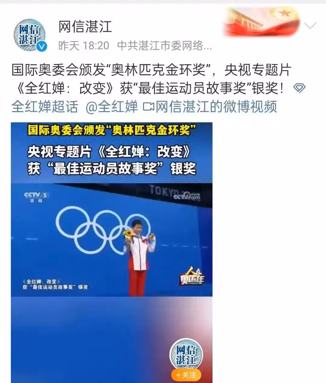 重磅!全紅嬋專題片《改變》獲銀獎,國際影響力遙遙領先^^