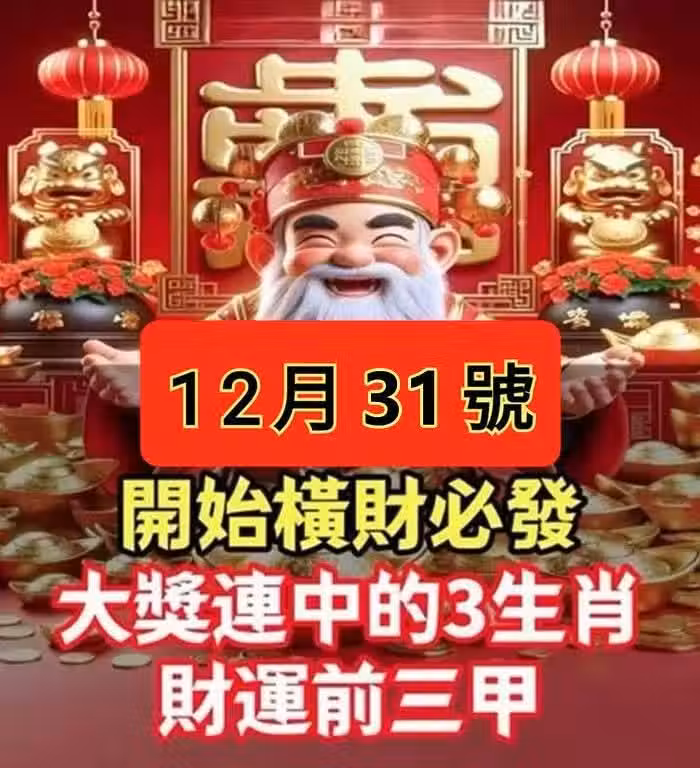 12月31號開始橫財必發,大獎連中的3生肖,財運前三甲。