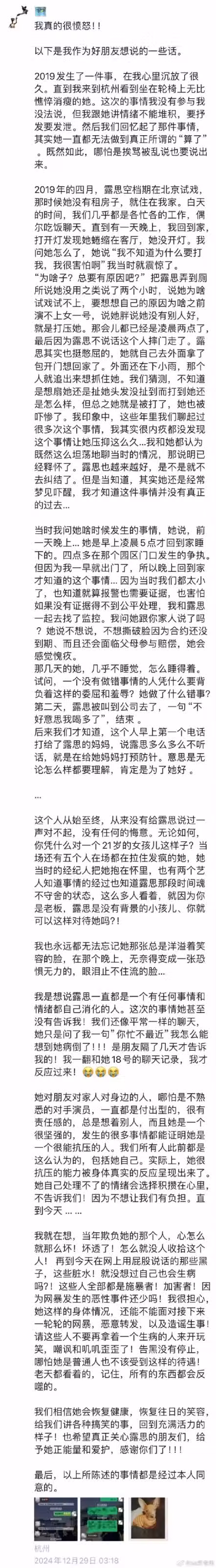 閨密髮長文痛揭趙露思被公司欺負的過往。