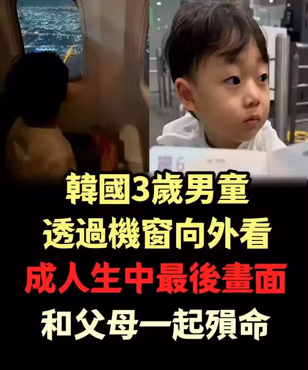 韓國3歲男童透過機窗向外看,成人生中最後畫面,和父母一起殞命!