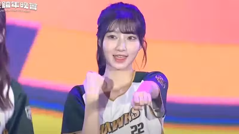 ▲「2025 高雄跨年晚會-亞灣星海奇航」找來WING STARS上台熱力演出,高人氣的韓援成員安芝儇、Mingo也在其中,女孩們大秀長腿,一粒更和隊長瑩瑩現場教跳她的成名應援曲〈葉保弟〉。圖為一粒。(圖/翻攝自華視綜藝頻道)