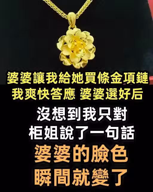 婆婆讓我給她買條金項鍊,我爽快答應,婆婆選好後,沒想到我只對櫃姐說了一句話,婆婆的臉色瞬間就變了