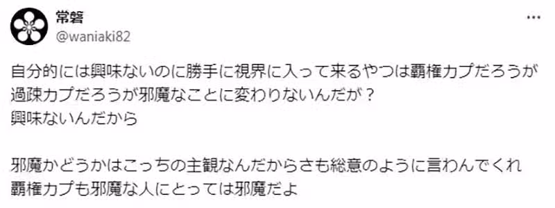 「比起吵什麼冷門CP,我倒覺得把主流CP搞出人設崩壞才更礙事吧~~」