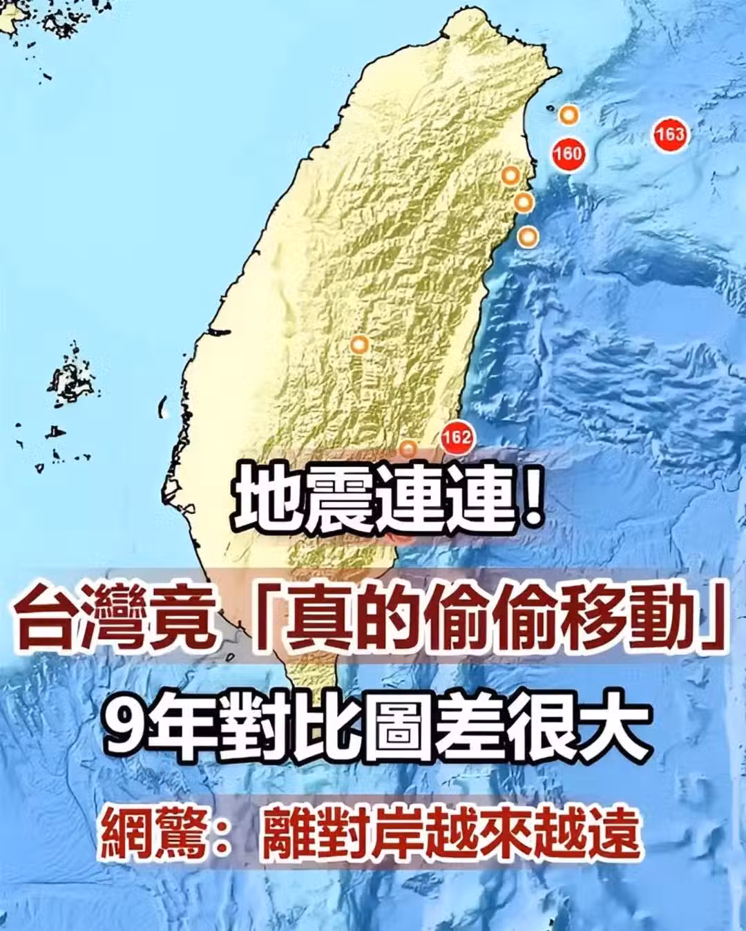 「台灣正在移動。」這一句聽起來像天方夜譚的描述,卻在近日被科學數據證明是事實。隨著近期地震頻發,中央氣象局發布了一組對比圖,揭示了台灣過去9年的「隱秘位移」現象。這些看似毫不起眼的移動,卻在地殼深處累積著難以忽視的巨大能量,為下一次地震埋下了伏筆。
