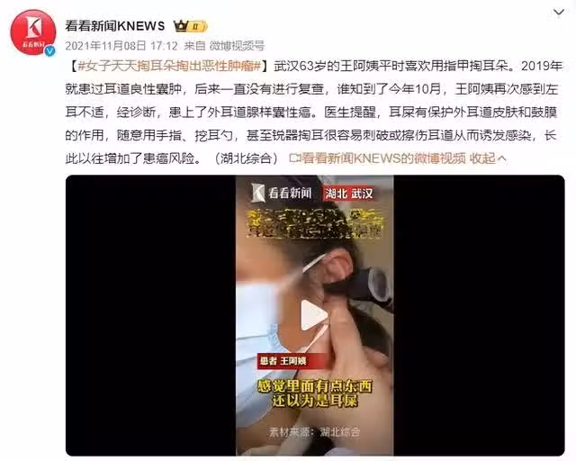 陸軍軍醫大學第一附屬醫院皮膚科專家楊希川教授指出,人的耳朵自帶清潔機制,耳道中的耳垢會在日常咀嚼、說話等活動時自然排出。頻繁人工清理耳朵,反而會刺激耵聹腺,導致耳垢分泌增多,耳朵變得更加油膩。