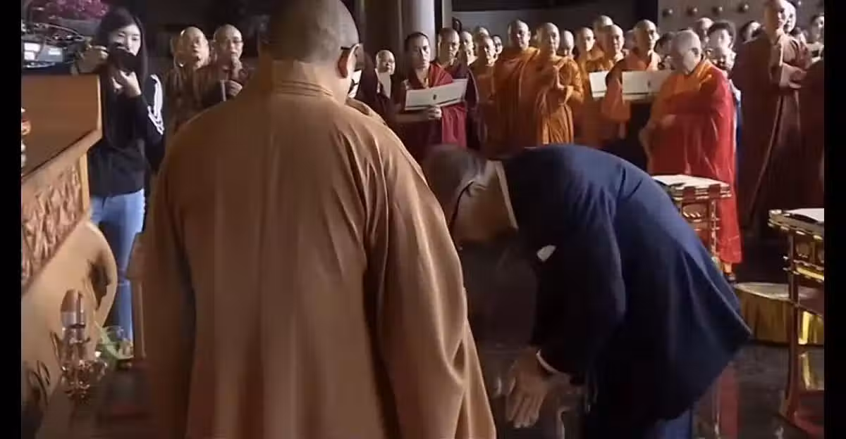 97歲李嘉誠現身慈山寺拜佛疑求長命百歲,佛堂下跪要人攙扶好心酸