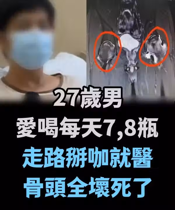 27歲男愛喝每天7、8瓶 走路掰咖就醫:骨頭全壞死了