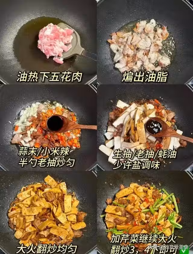 鍋中倒油,放入五花肉煸炒出油,加入蔥花、薑末、蒜末炒香,放入芹菜段翻炒,再加入香乾片,加適量生抽、鹽、少許胡椒粉調味,翻炒均勻至芹菜斷生即可。