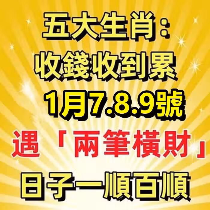 收錢收到累!1月7.8.9號遇「兩筆橫財」日子一順百順的生肖