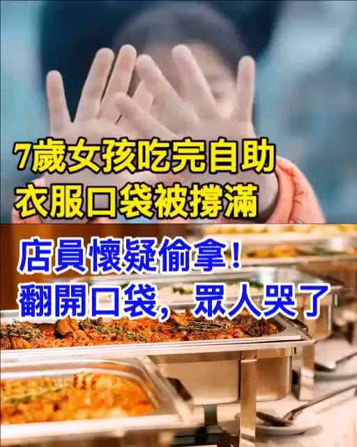 7歲女孩吃完自助,衣服口袋被撐滿,店員懷疑偷拿!結果翻開口袋,眾人哭了