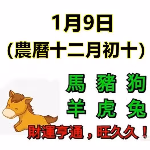 小運播報:2025年1月9日,星期四,農曆十二月初十,法定工作日。