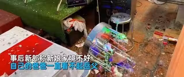 當被人勸說時,新郎情緒激動,嘴裡不停地訴說著心中的委屈。