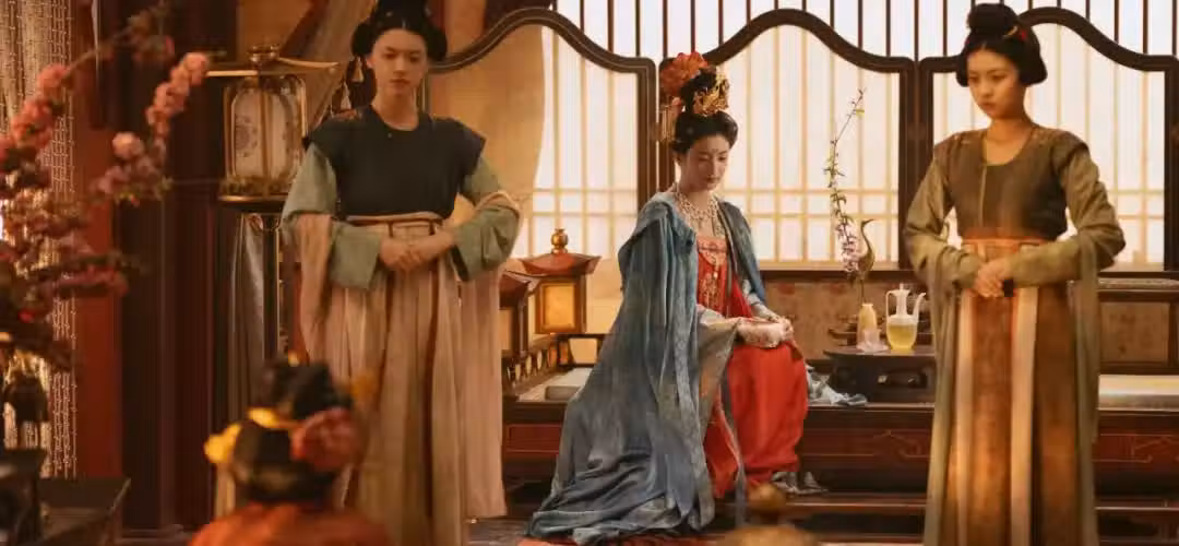 隨著鏡頭來到了房屋內部,大戶人家的屋內布置,從桌椅的樣式到院落的格局,每一個細節盡顯大唐時期古人的獨特審美。
