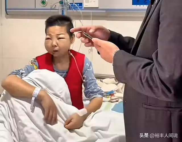 時間來自去年11月份,當時的雨虹妹妹已經住院,且留著短髮,模樣看起來十分憔悴,與沒有患病之前的模樣對比,簡直是天壤之別,不但整個臉頰全鼓了起來,而且說話也不方便。