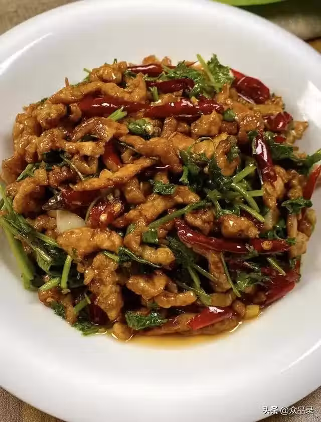 3. 鍋中再倒少許油,放入姜蒜末、干辣椒段炒香,加入青椒和紅椒絲翻炒至斷生,放入肉絲,加鹽、白糖、雞精調味,翻炒均勻即可。這道菜紅紅綠綠,色澤誘人,寓意著「生活多彩」。