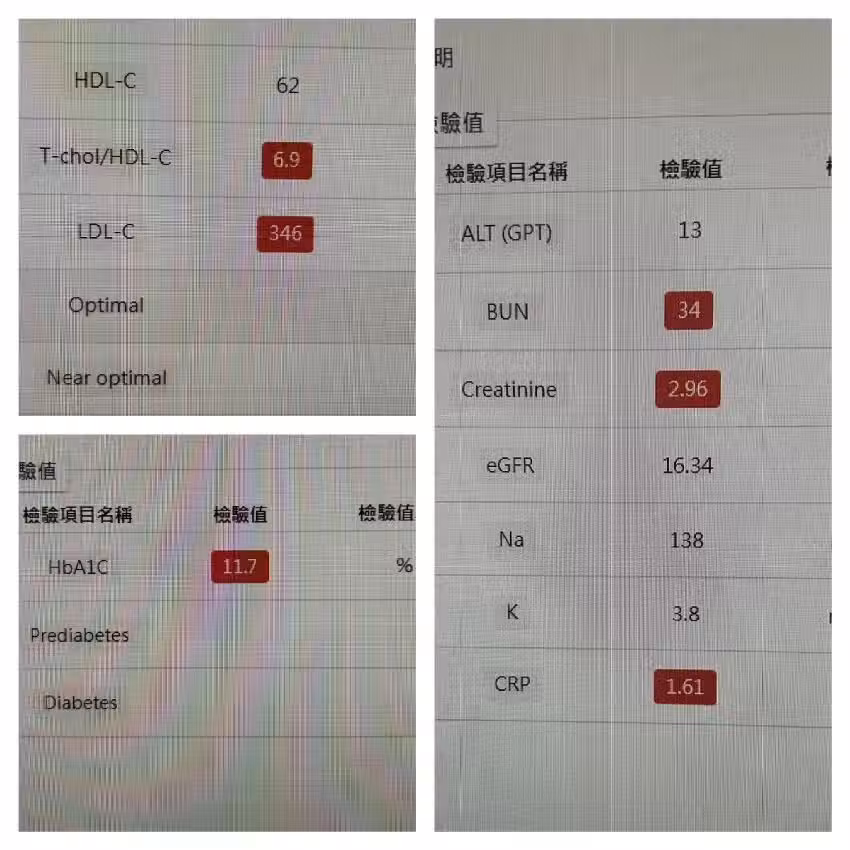 陳冠任表示,該名57歲婦人的低密度脂蛋白(LDL)在檢查時竟超過346mg/dL,讓他驚訝表示,通常超過130mg/dL就需加以控制,190以上就必須強制用藥,甚至是心血管疾病患者早在55至100之間就要加緊治療,否則恐發生危險,「LDL超過200mg/dL不算多,超過300mg/dL更是鳳毛麟角」,因此這次病例幾乎是他首次遇見。