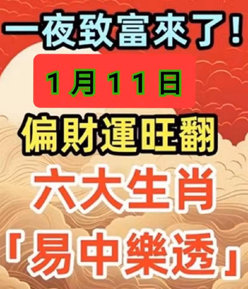 一夜致富來了!1月11日偏財運旺翻「易中樂透」的生肖