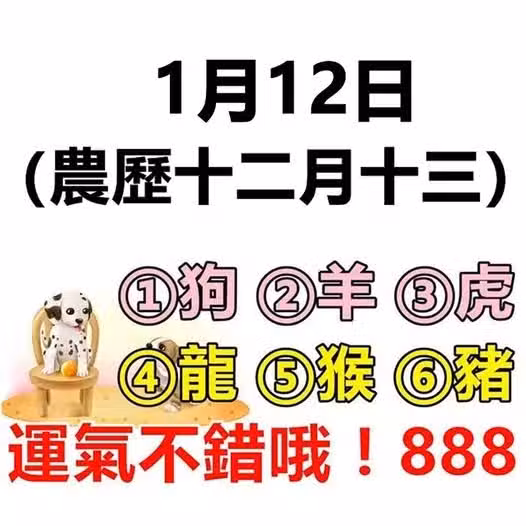 1月12日生肖運勢_狗、羊、虎大吉