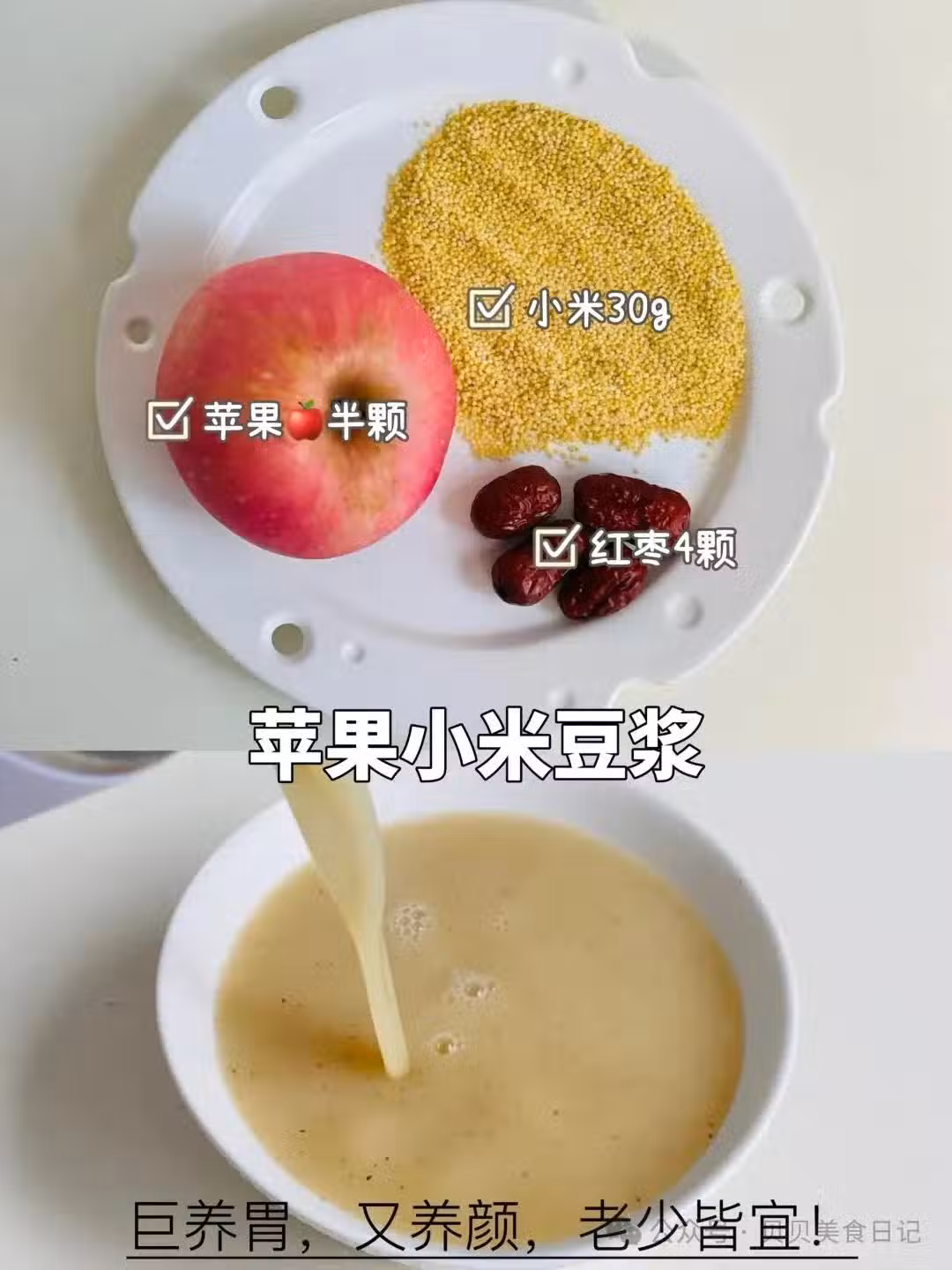 小米和紅棗是經典的健脾養胃組合,蘋果則能增加風味和營養,適合全家人飲用。