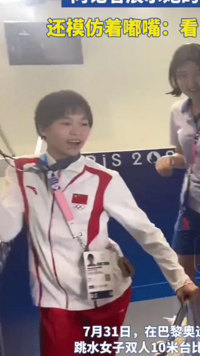 看!這是全紅嬋——在拿到金牌之後,沒有大人的那種規矩,傳統的規則。也沒有刻意,她就是拿著金牌,開心的自己轉了一圈!這種發自內心的快樂,一點也不是裝出來的,就是她的天性。因為這樣的天性,所以她才能把訓練中練出來的東西,原封不動在奧運舞台上展現出來,因為內心簡單、純凈,不害怕!