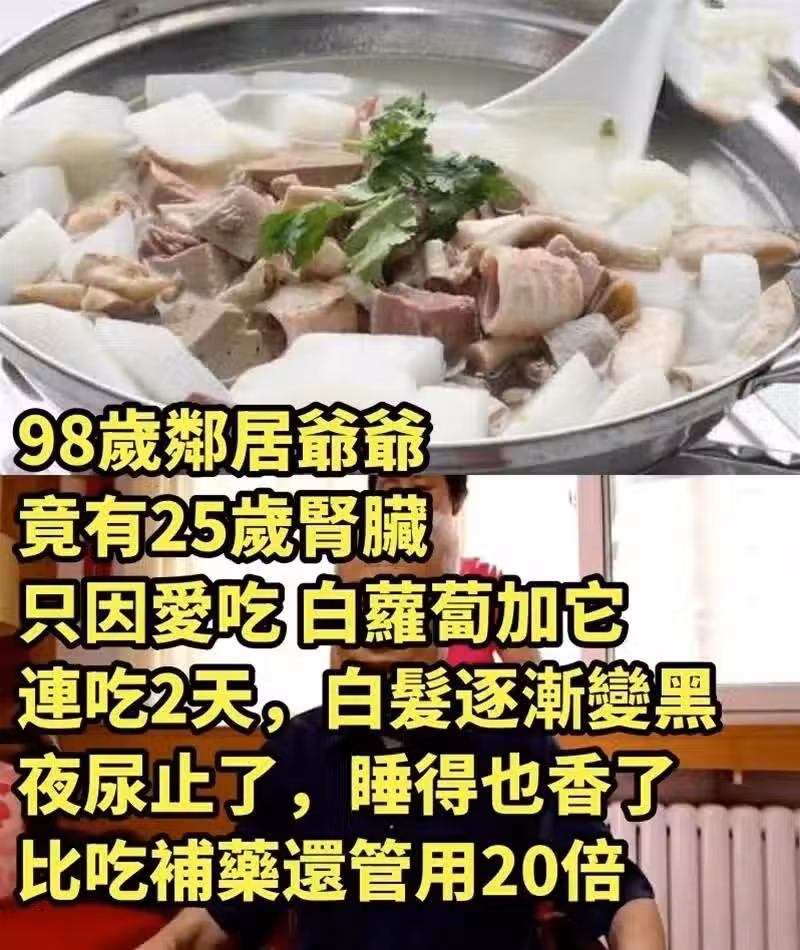 98歲鄰居爺爺,竟有25歲腎臟,只因愛吃 白蘿蔔加它,連吃2天,白髮逐漸變黑,夜尿止了,睡得 也香了,比吃補藥還管用20倍