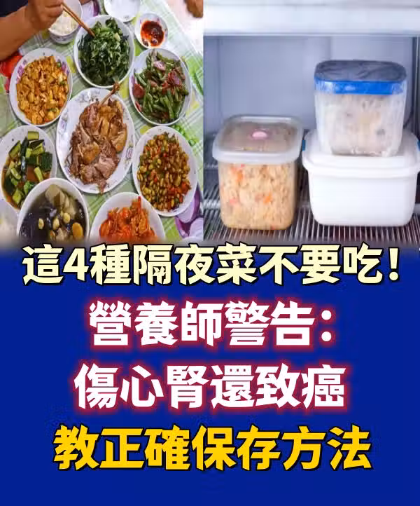 但營養師警告,有4種隔夜菜千萬不要吃,否則隨時傷心臟、傷腎,甚至致癌。
