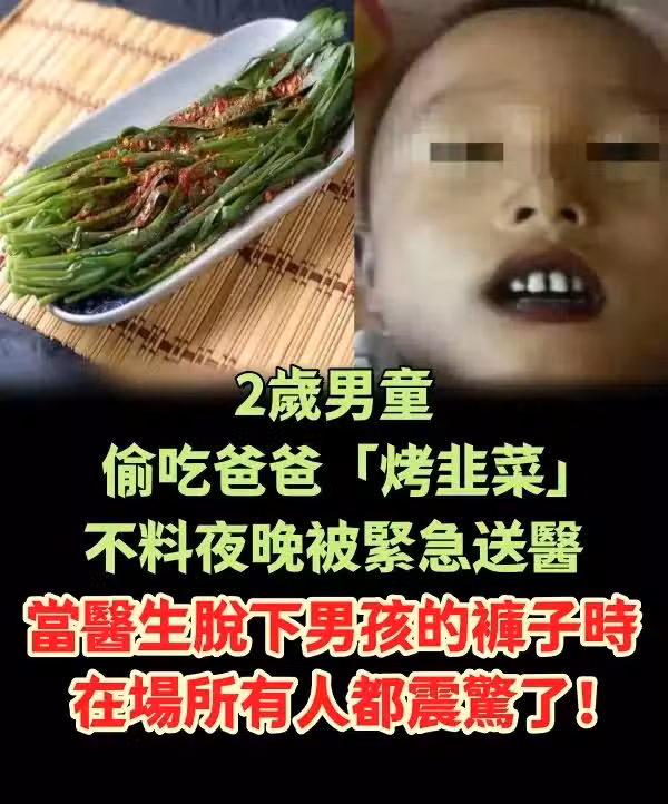2歲男童偷吃爸爸「烤韭菜」,不料夜晚被緊急送醫,當醫生脫下男孩的褲子時......在場的所有人都震驚了!
